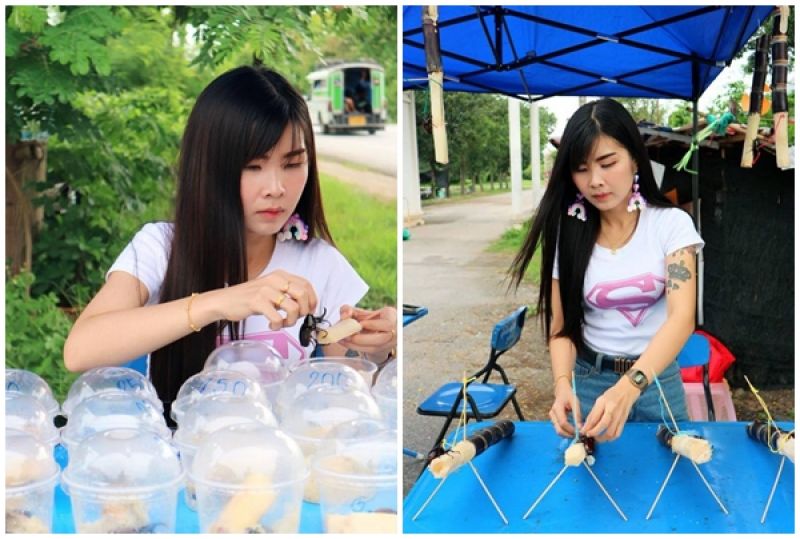 ซุ้มขาย กว่าง พิกัด เส้นบ่อเหลือง มุ่งหน้าป่าซาง(ลำพูน) ประมวลภาพแม่ค้า