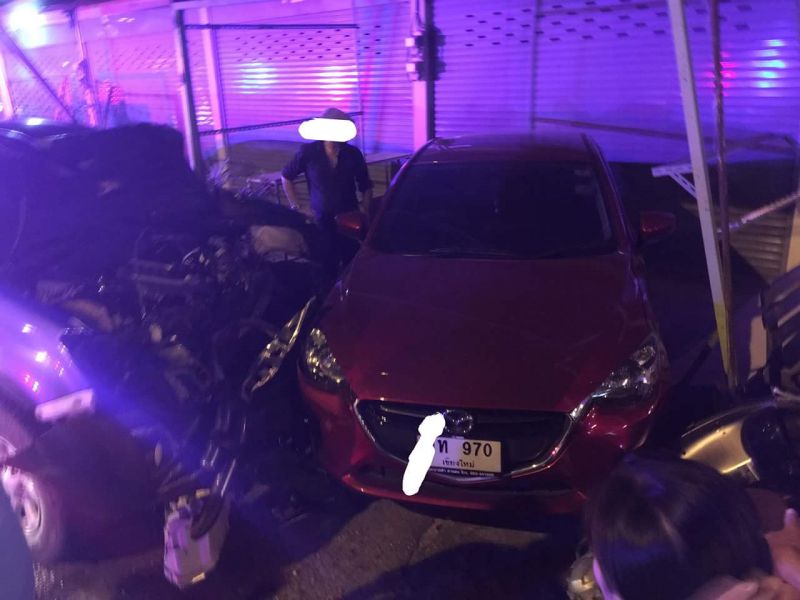 ชนระนาวรถยนต์ 4 จักรยานยนต์ 2 บนถนนคันคลองหางดง-สันป่าตอง