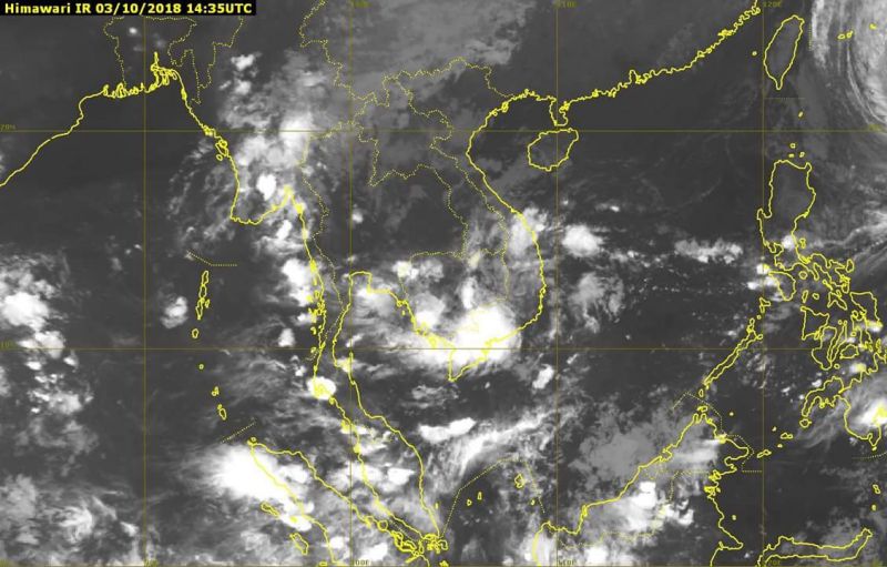 รายงานการติดตามสภาวะอากาศเมื่อเวลา 22.00 วันพุธที่ 3 ตุลาคม พ.ศ. 2561 ภาคเหนือ: มีเมฆเป็นส่วนมาก เป็นเมฆฝนและชั้นต่ำ ตรวจพบกลุ่มฝนบริเวณ จ.เชียงใหม่ เชียงราย แม่ฮ่องสอน พิจิตร ลมตะวันออก ความเร็ว 15-30 กม./ชม.