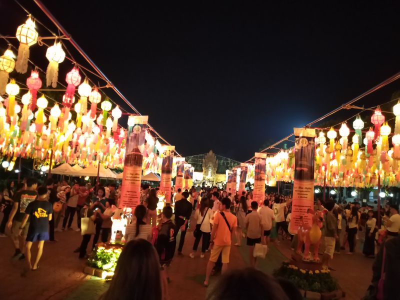 คึกคักมาก!! บรรยากาศเทศกาลโคมลำพูน ณ ลานเจ้าแม่จามเทวี