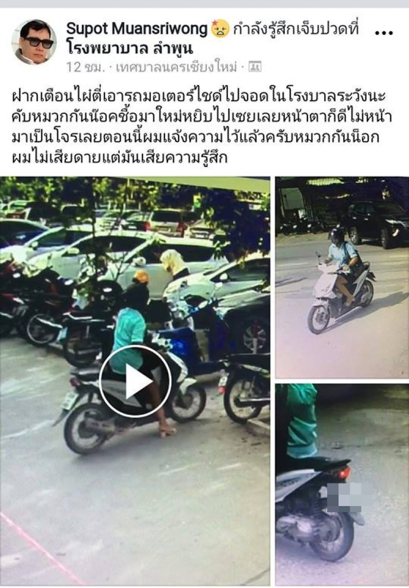 สาวหยิบหมวกกันน๊อคของคนอื่นไป ใน รพ.ลำพูน เข้ามอบตัวแล้ว พร้อมโดนข้อหาลักทรัพย์