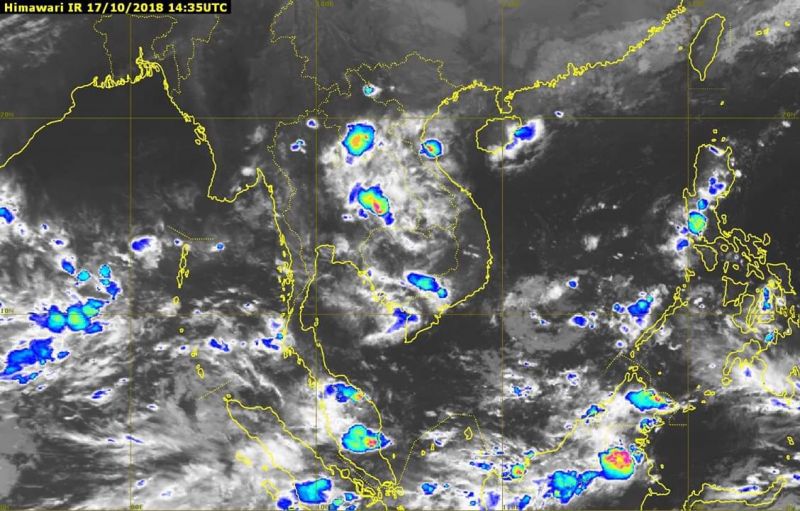 รายงานการติดตามสภาวะอากาศเมื่อเวลา 22.00 น (วันพุธที่ 17 ตุลาคม พ.ศ. 2561) ภาคเหนือ : มีเมฆเป็นส่วนมาก ส่วนใหญ่เป็นเมฆชั้นต่ำ และเมฆฝนฟ้าคะนอง ตรวจพบกลุ่มฝนบริเวณ จ.เชียงราย เชียงใหม่ ลำพูน และลำปาง ลมตะวันตก ความเร็ว 10-25 กม./ชม. ติดตามรายงานสภาวะอากาศได้ที่ http://www.sattmet.tmd.go.th/satmet/monitoring/monitoring.html