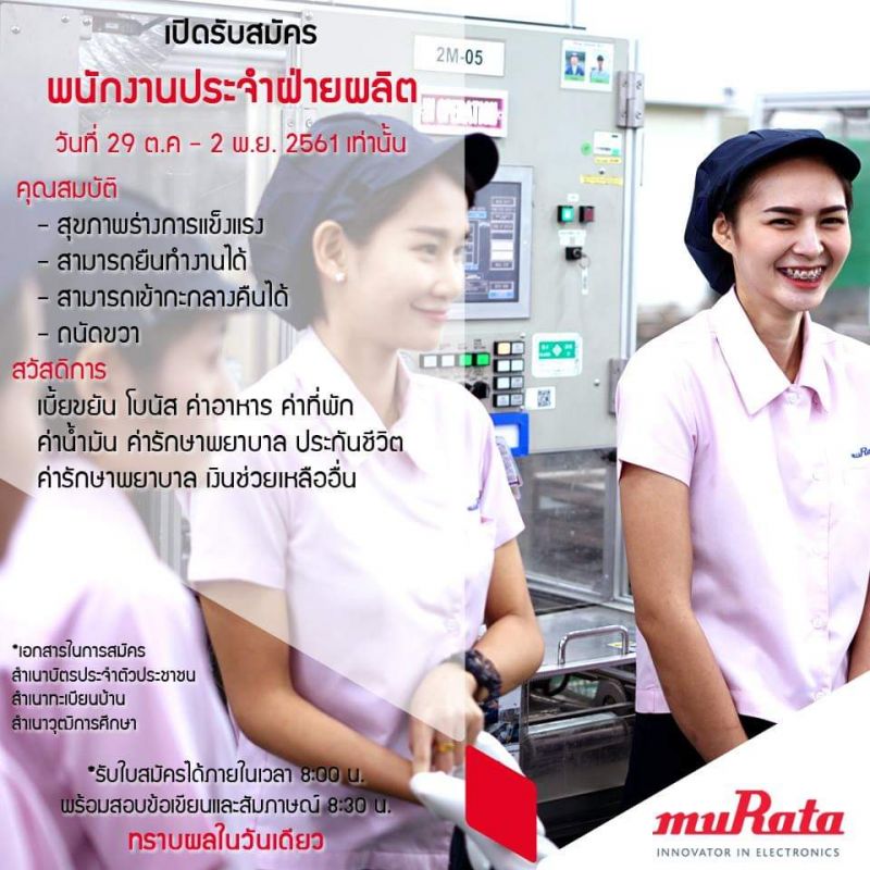 บริษัท มูราตะฯ ขอประชาสัมพันธ์การเปิดรับสมัครพนักงานฝ่ายผลิตรายวัน (จำนวน 500 อัตรา)