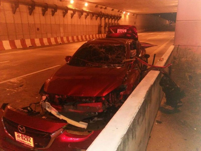 เก๋งพลิกคว่ำ ตกลง มายังทางลอดแยกหนองประทีป หนุ่มสาว กระเด็นเสียชีวิต 2 ราย