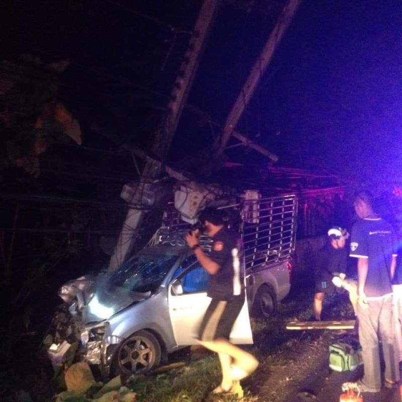 เบื้องต้นที่เกิดเหตุพบกระบะชนกับเสาไฟฟ้า มีผู้บาดเจ็บชาย1ราย หมดสติไม่รู้สึกตัว ไม่มีชีพจร เจ้าหน้าที่เร่งนำออกจากรถอย่างระมัดระวัง เนื้องจากมีสายไฟพาดกับรถอยู่จนนำออกมาได้ เจ้าหน้าที่ได้ทำการCPR ส่งต่อให้ ทีมระดับA รพ.ลำพูน นำส่ง รพ.ลำพูน