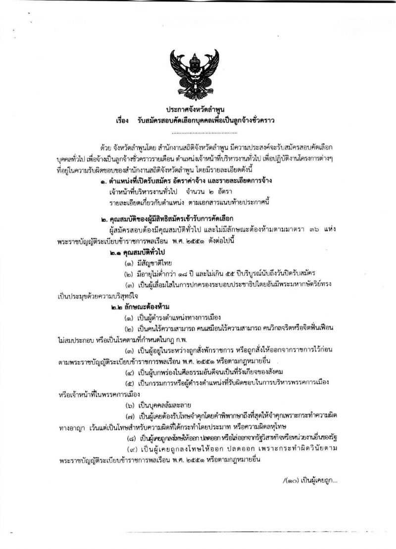 📢 ประกาศ สำนักงานสถิติจังหวัดลำพูน 📢 📌 รับสมัครคัดเลือกเพื่อเป็นลูกจ้างชั่วคราว ➡️ ตำแหน่ง เจ้าหน้าที่บริหารงานทั่วไป จำนวน 2 อัตรา 📆 เปิดรับสมัครวันที่ 26 - 28 พฤศจิกายน 2561 🕗 09.00-12.00,13.00-16.30 น.