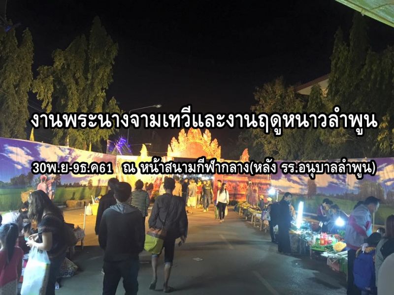 ผู้ว่าราชการจังหวัดลำพูน กล่าวว่า จังหวัดลำพูน กำหนดจัดงานพระนางจามเทวีและงานฤดูหนาว ประจำปี 2561 เพื่อเทิดพระเกียรติพระนางจามเทวีปฐมกษัตรีย์ แห่งนครหริภุญไชยและส่งเสริมการแสดงศิลปวัฒนธรรมการท่องเที่ยวของจังหวัดลำพูนและหารายได้สนับสนุนสาธารณกุศลของเหล่ากาชาดจังหวัดลำพูน ระหว่างวันที่ 30 พฤศจิกายน – 9 ธันวาคม2561 รวม 10 วัน 10 คืน ที่ด้านหน้าสนามกีฬากลางจังหวัดลำพูน
