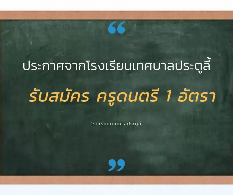📣ประกาศจากโรงเรียนเทศบาลประตูลี้ จังหวัดลำพูน รับสมัคร ครูดนตรี จำนวน 1 อัตรา 📌เอกสารประกอบการสมัคร 1.เอกสารวุฒิการศึกษา 2.บัตรประชาชน 3.สำเนาทะเบียนบ้าน 4.รูปถ่าย 1 นิ้วหน้าตรงถ่ายไม่เกิน 6 เดือน 5.แฟ้มสะสมงาน เข้ามาสมัครด้วยตัวเองได้ที่ ห้องธุรการโรงเรียนเทศบาลประตูลี้ สอบถามอื่นๆติดต่อได้ที่ : 053-511688 (ในเวลาราชการ)