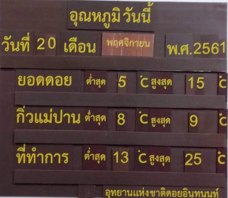 เช้านี้(20พ.ย.61) ที่ดอยอินทนนท์อุณหภูมิลดลง ยอดดอยอินทนนท์อุณหภูมิเหลือเพียง 5 องศา อากาศเปิด ส่วนที่กิ่วแม่ปาน อุณหภูมิ 8 องศา
