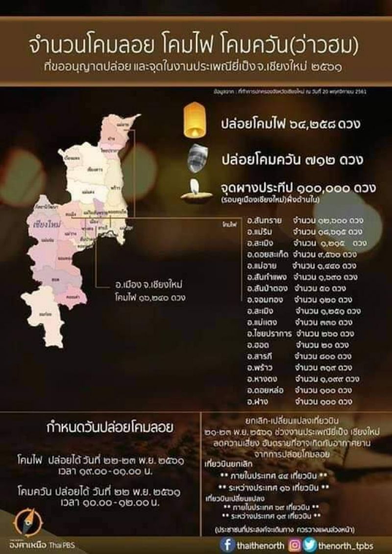 #ขอประชาสัมพันธ์ กำหนดวันและเวลา การปล่อยโคมลอย โคมไฟ ขอความร่วมมือประชาชนร่วมสืบสานประเพณีและวัฒนธรรมอย่างถูกต้องตามกฎหมาย และปลอดภัยจากเหตุอุบัติภัย #ด้วยความหวังดีจาก.... ทีมงาน cmprice.com ขอบคุณภาพ ThaiPBS องศาเหนือ
