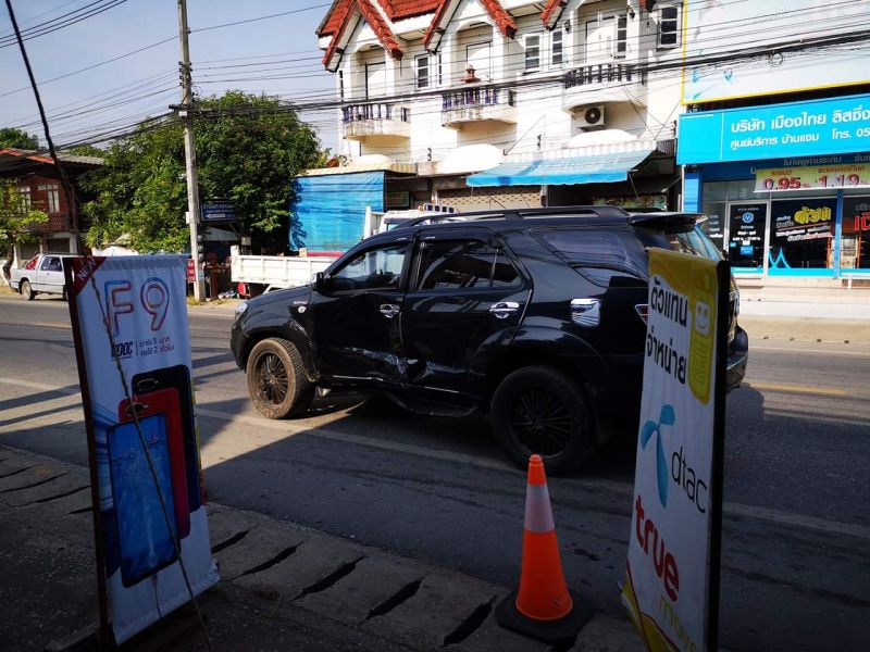 กระบะชนกับ SUV หน้าตลาดบ้านแซม อำเภอป่าซางจังหวัดลำพูน