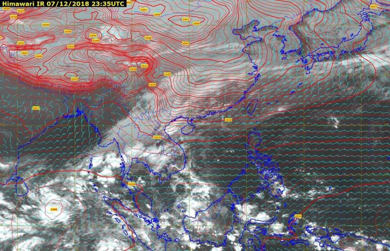 รายงานการติดตามสภาวะอากาศเมื่อเวลา 07.00 น. (วันเสาร์ที่ 8 ธันวาคม พ.ศ. 2561) ภาคเหนือ : มีเมฆเต็มท้องฟ้า ส่วนมากเป็นเมฆชั้นต่ำ และเมฆฝนฟ้าคะนอง ตรวจพบกลุ่มฝนบริเวณ จ.เชียงใหม่ ลำปาง ลำพูน อุตรดิตถ์ สุโขทัย พิษณุโลก กำแพงเพชร พิจิตร เพชรบูรณ์ และตาก ลมตะวันออกเฉียงใต้ ความเร็ว 10-30 กม./ชม. ติดตามรายงานสภาวะอากาศได้ที่ http://www.sattmet.tmd.go.th/satmet/monitoring/monitoring.html
