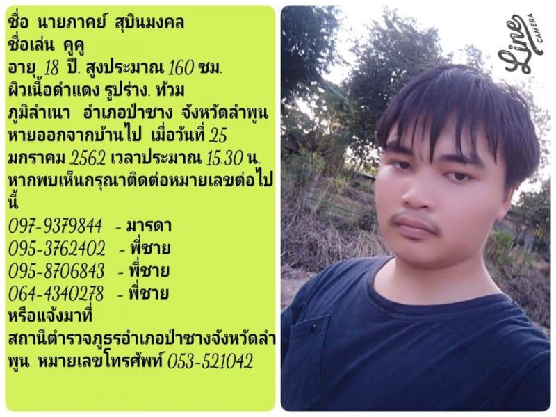 ตามหาหนุ่มป่าซาง หายไป พร้อมพระเครื่องและเงินสด ญาติเป็นห่วงมากๆ