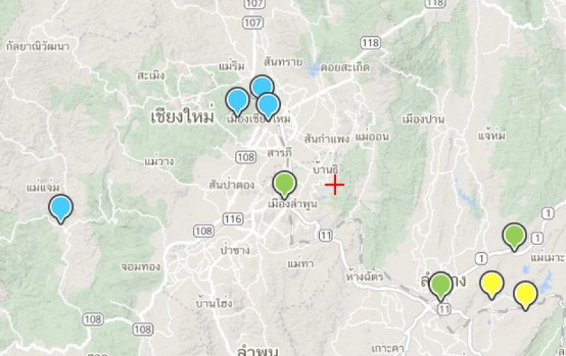 ตลอดสองวันที่ผ่านมา ลำพูน อากาศอยู่ในเกณฑ์ดี(สีเขียว)