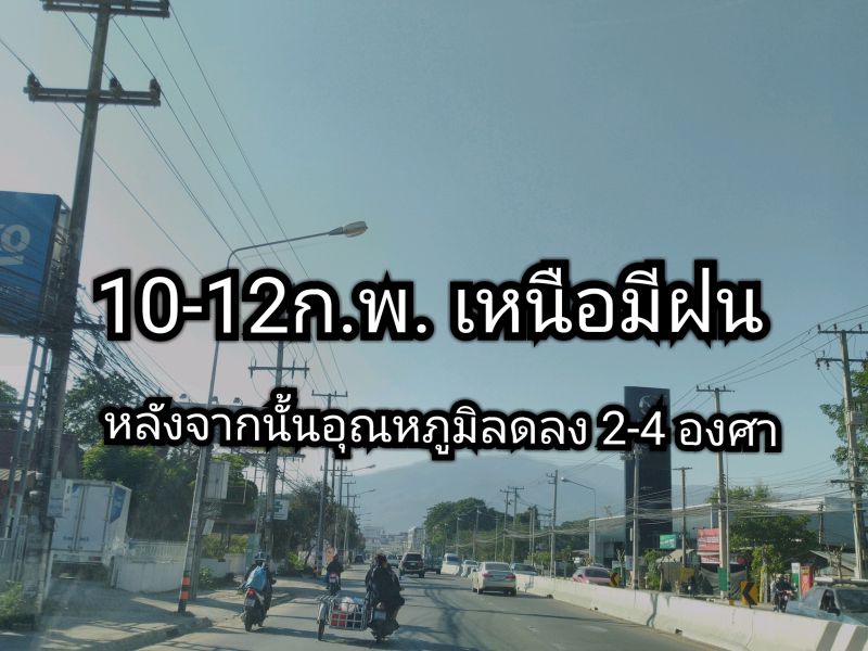 | • 10-12ก.พ. เหนือมีฝน หลังจากนั้นอุณหภูมิลด 2-4 องศา |