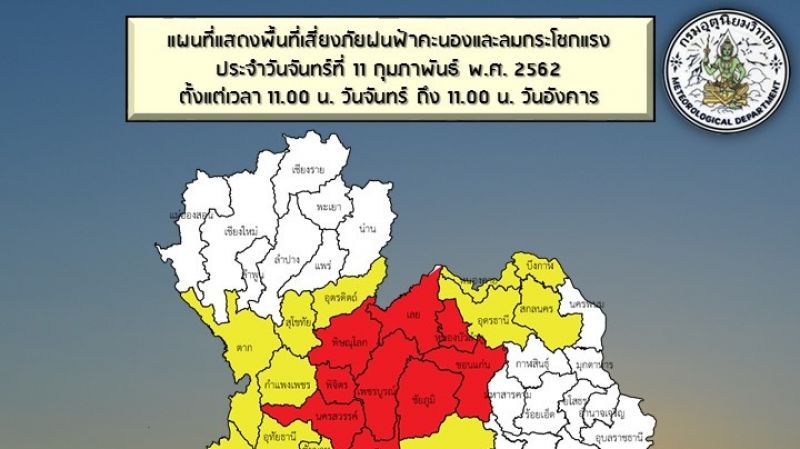 | • 11-12 ก.พ. 62 เหนือเสี่ยงมีฝนฟ้าคะนอง ลมกรรโชกแรง! |