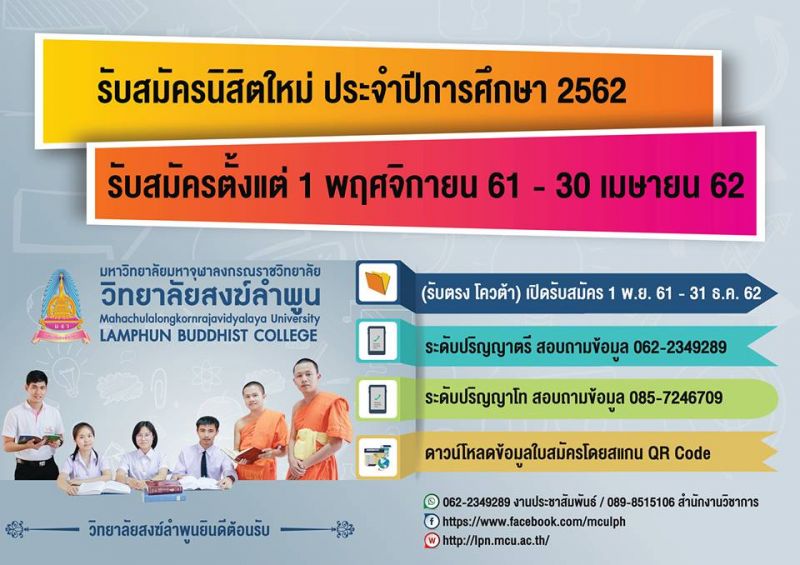 มหาจุฬาฯลำพูน เปิดรับ นศ. ป.ตรี-โท ถึง 30เมษา62