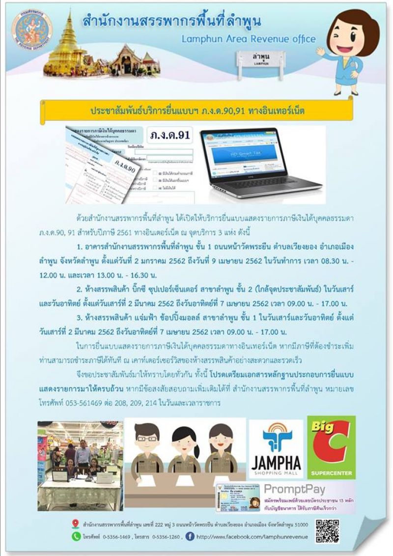 สรรพากรลำพูน เชิญพี่น้อง ยื่นแบบภาษี ที่ bigC ,แจ่มฟ้า หรือทำด้วยตนเอง ผ่านเน็ต