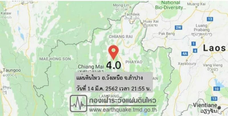 21.55 น. แผ่นดินไหวขนาด 4ริกเตอร์ ที่วังเหนือ