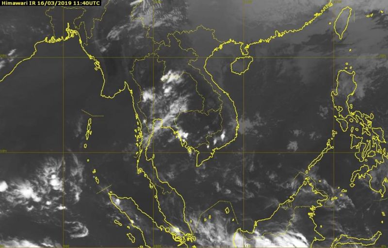 รายงานการติดตามสภาวะอากาศ ประจำวันที่ 16 มีนาคม 2562 เวลา 19.00 น. ภาคเหนือ : มีเมฆเป็นส่วนมาก เป็นเมฆชั้นต่ำและเมฆฝนฟ้าคะนอง ตรวจพบกลุ่มฝนบริเวณ จ.ตาก อุตรดิตถ์ สุโขทัย พิจิตร และเพชรบูรณ์ ลมตะวันตก ความเร็ว 10-15 กม./ชม. http://www.sattmet.tmd.go.th