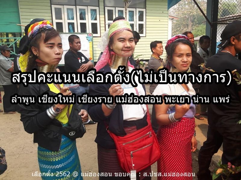 สรุปคะแนนเลือกตั้ง(ไม่เป็นทางการ) ลำพูน เชียงใหม่ เชียงราย แม่ฮ่องสอน พะเยา น่าน แพร่