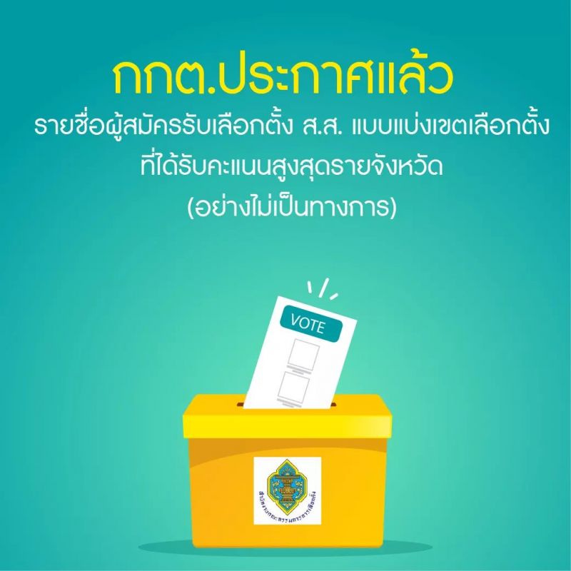 💥 ด่วน!! กกต.ประกาศแล้ว รายชื่อผู้สมัครรับเลือกตั้ง ส.ส. แบบแบ่งเขตเลือกตั้งที่ได้รับคะแนนสูงสุดรายจังหวัด (อย่างไม่เป็นทางการ) ✅🇹🇭 คลิก Link เพื่อ download 🔽 https://www.ect.go.th/ewt/ewt/ect_th/download/article/article_20190325160448.pdf?fbclid=IwAR3tfG86wk5xPGakI4fVza7lGmHpzUBxdoHE8VkGDgzBSHlm__JDyQjIlAI