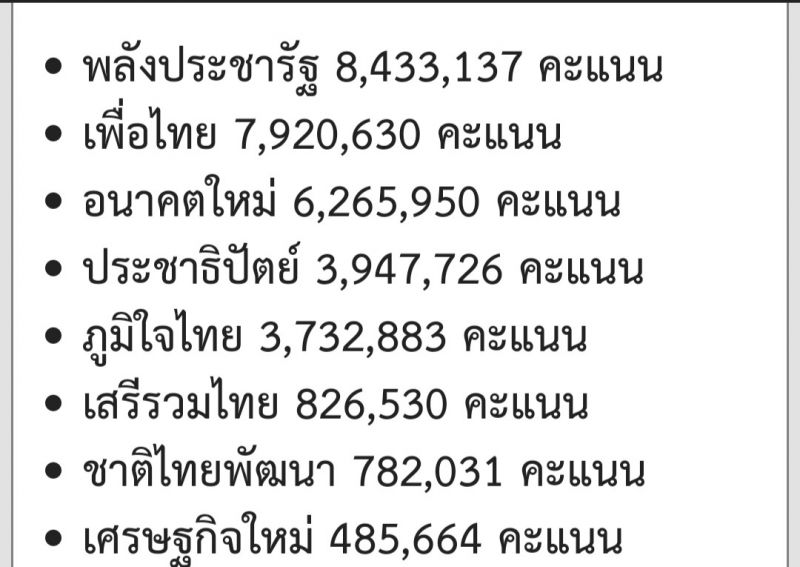 | • ผลคะแนนเลือกตั้ง100% ปรับคนใช้สิทธิ์เพิ่มขึ้นอีก 9% ,พปชร.8.4ล้าน เพื่อไทย 7.9ล้าน |