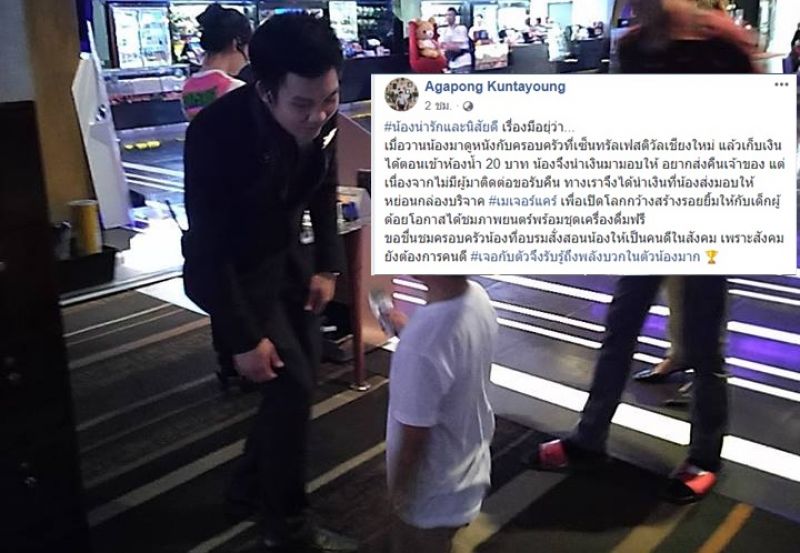 หลังจากที่ เมื่อวานนี้ เว็บไซต์/เพจ cmprice.com ได้นำเสนอเกี่ยวกับเรื่องราวของหนุ่มน้อยรายหนึ่ง ได้พบเจอเงินในห้องน้ำ ใน โรงหนังเมเจอร์เซ็นทรัเฟสติวอล เชียงใหม่ เป็น จำนวน 20บาท จึงได้นำส่งให้ เจ้าหน้าที่ประจำโรงหนัง เพื่อส่งคืนเจ้าของ