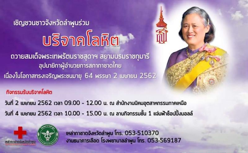 | • 2และ4เมษา เชิญร่วมบริจาคโลหิต ถวายสมเด็จพระเทพรัตนราชสุดาฯ |