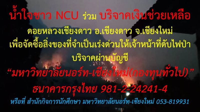 ด่วน!!!! ม.นอร์ท-เชียงใหม่ เปิดรับบริจาค ช่วยดับไฟ ดอยหลวงเชียงดาว