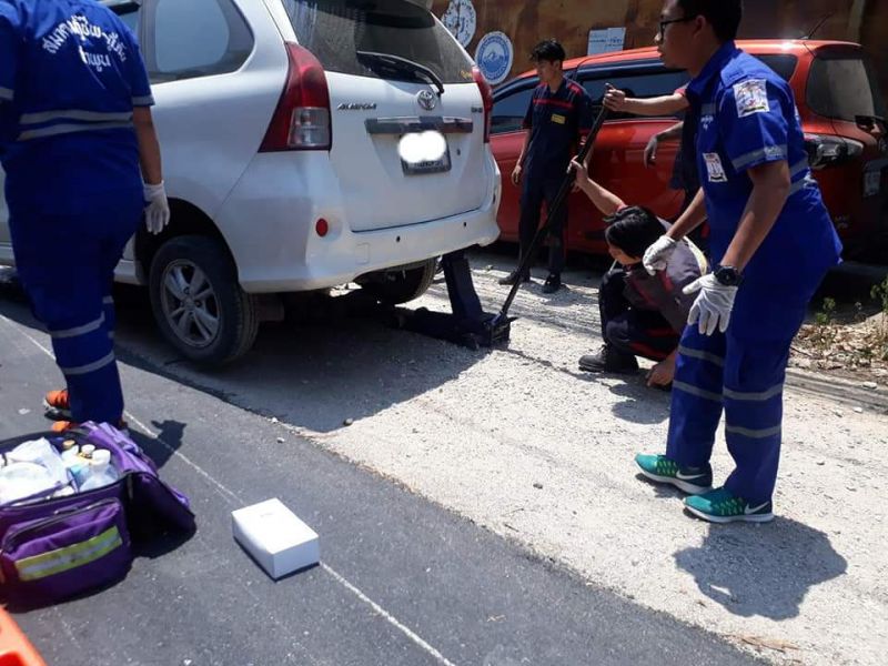 ในที่เกิดเหตุพบชาย1รายอายุ75ปี มีแผลฉีกขาดกระดูกโผล่บริเวณขาด้านซ้าย บาดแผลทั่วร่างกาย ไม่รู้สึกตัว ติดอยู่ใต้ท้องรถ สมาคมกู้ชีพ-กู้ภัย ลำพูน เร่งทำการช่วยเหลือนำออกจากใต้ท้องรถ ส่งต่อให้ กู้ชีพโรงพยาบาลลำพูน ทำการปั้มหัวใจ(CPR) นำส่ง รพ.ลำพูน