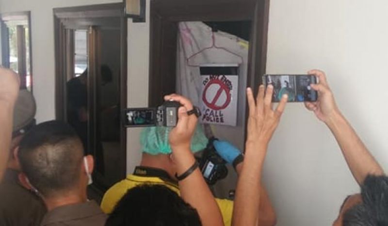 และ ด้านหน้าห้อง เขียนบอกเตือนว่า  "  ห้ามเข้า  ให้เรียกตำรวจ!  " เบื้องต้นพบเป็นแก๊สฮีเลี่ยม