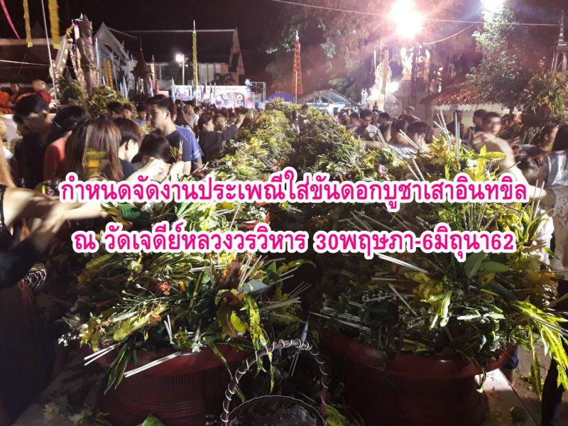 เสาอินทขิล ประจำปี 2562 ณ วัดเจดีย์หลวงวรวิหาร ระหว่างวันที่ 30 พฤษภาคม – 6 มิถุนายนนี้ และขอความร่วมมือประชาชนแต่งกายด้วยชุดขาวปฏิบัติธรรม ชุดพื้นเมือง หรือชุดสุภาพ