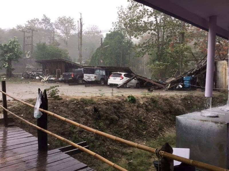 ฝนตกหนักที่แม่ตื่น(อมก๋อย) ลมแรงพัดโรงรถพัง