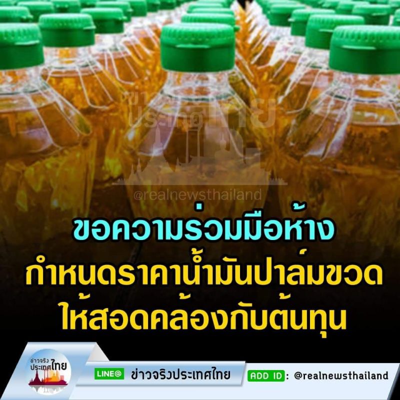จากเดิมราคาผลปาล์มเคยตกต่ำอยู่ที่กิโลกรัมละ 1.60 - 1.80 บาท ปรับตัวสูงขึ้นอยู่ที่กิโลกรัมละ 3.20 - 3.40 บาท และราคาปาล์มน้ำมันดิบอยู่ที่กิโลกรัมละ 19.50 - 20 บาท ทั้งนี้ หากคิดเป็นต้นทุนการผลิตน้ำมันปาล์มบรรจุขวดจะอยู่ที่ประมาณ 32 - 35 บาท ดังนั้น จึงได้ขอความร่วมมือให้ทางห้างสรรพสินค้ากำหนดราคาจำหน่ายน้ำมันปาล์มบริสุทธิ์ให้สอดคล้องกับต้นทุนที่แท้จริง เพื่อหลีกเลี่ยงการกดราคาขายต่ำกว่าทุน ซึ่งจะส่งผลสะท้อนไปยังราคาลูกปาล์มให้ตกลงซึ่งจะกลับมาเป็นปัญหาต่อชาวสวนปาล์ม