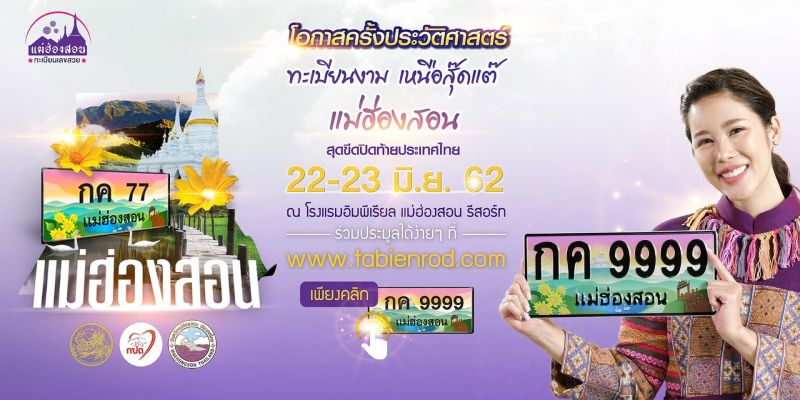 คุณเบญ เรวิญานันท์ และ พี่โดม ขอเชิญทุกท่านร่วมการประมูลทะเบียนรถเลขสวยครั้งประวัติศาสตร์ จ.แม่ฮ่องสอน ที่ไม่ว่าใครก็ไม่ควรพลาด
