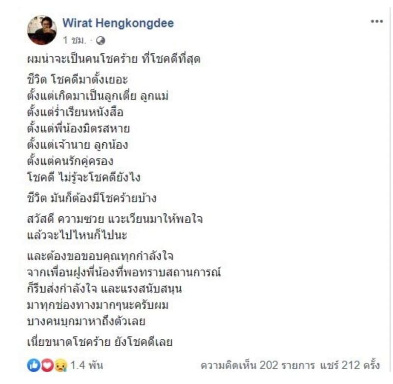 | • ผู้กำกับหนัง รัก2ปียินดีคืนเงิน โพสต์ "สวัสดีความซวย" |