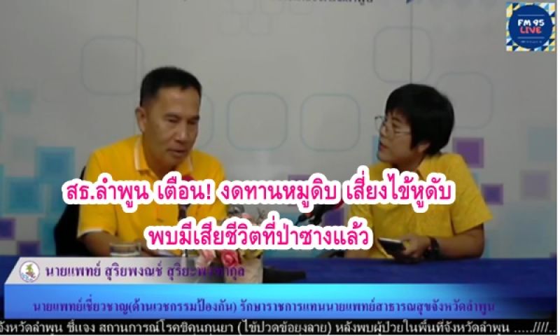| • สธ.ลำพูน เตือน! งดทานหมูดิบ เสี่ยงไข้หูดับ มีเสียชีวิตที่ป่าซางแล้ว |
