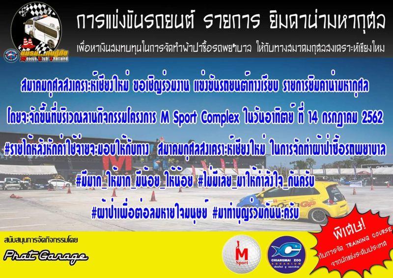 ในวันอาทิตย์ ที่ 14 กรกฎาคม 2562 ทางสมาคมกุศลสงเคราะห์เชียงใหม่ได้มีการจัดงาน แข่งขันรถยนต์ทางเรียบ รายการยิมคาน่ามหากุศล เพื่อหาเงินสมทบทุนซื้อรถพยาบาล โดยจะจัดขึ้นที่บริเวณลานกิจกรรมโครงการ M Sport Complex ใกล้กับแยกหลุยส์ .