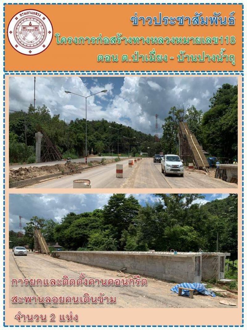 ข่าวประชาสัมพันธ์ โครงการก่อสร้างทางหลวงหมายเลข118 ตอน ต.ป่าเมี่ยง-บ้านปางน้ำถุ จะดำเนินการยกและติดตั้งคานคอนกรีตสะพานลอยเดินคนข้าม จำนวน 2 แห่งในห้วง วันที่22-23กรกฎาคม2562(ตามรายละเอียด)แจ้งให้ทราบโดยทั่วกันครับ