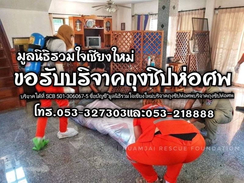 มูลนิธิรวมใจเชียงใหม่ ขอเชิญผู้มีจิตศรัทธาร่วมบริจาคถุงซิปห่อศพ เพื่อใช้บรรจุร่างผู้เสียชีวิตในกรณีที่เป็นโรคติดต่อหรือผู้เสียชีวิตที่เสียชีวิตเป็นเวลาหลายวัน เนื่องจากว่าหากเสียชีวิตแบบนี้จะไม่สามารถใช้ผ้าดิบในการบรรจุร่างได้ครับ อีกทั้งช่วงนี้มีเคสเสียชีวิตแบบนี้เป็นจำนวนมาก ถุงซิปจึงไม่เพียงพอต่อการใช้งานครับ โดยบริจาคเป็นถุงซิปหรือเงินสด ใบละ 250 บาท หรือโอนเข้าบัญชี 501-306067-5 ชื่อบัญชี"มูลนิธิรวมใจเชียงใหม่" ธ.ไทยพาณิชย์ ท่าแพ เพื่อรวบรวมสั่งซื้อร้านโดยตรง (เสร็จแล้วโทรแจ้งเพื่อขอรับใบอนุโมทนาบัตร) สอบถามข้อมูลเพิ่มเติม โทร.053-327303และ053-218888
