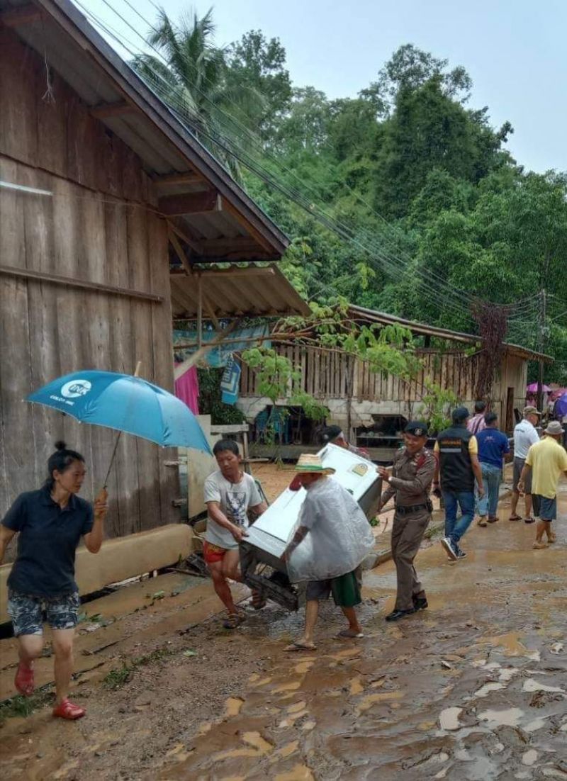 เจ้าหน้าที่ตำรวจ สภ.ปง จ.พะเยา เข้าทำการช่วยเหลือประชาชนเหตุน้ำป่าไหลหลากเข้าบ้านเรือนราษฎร ซึ่งขณะนี้สถานการณ์เข้าสู่ภาวะปกติแล้ว