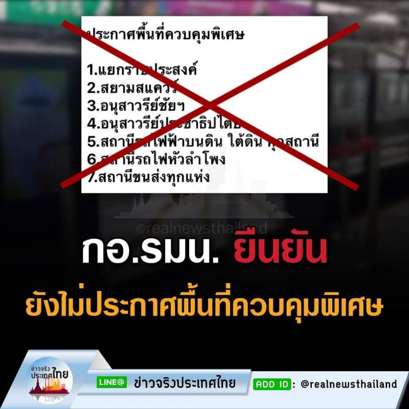 🔸🔸 ตามที่มีข่าวเผยแพร่ในโซเชียลมีเดีย เรื่อง การประกาศพื้นที่ควบคุมพิเศษ ได้แก่