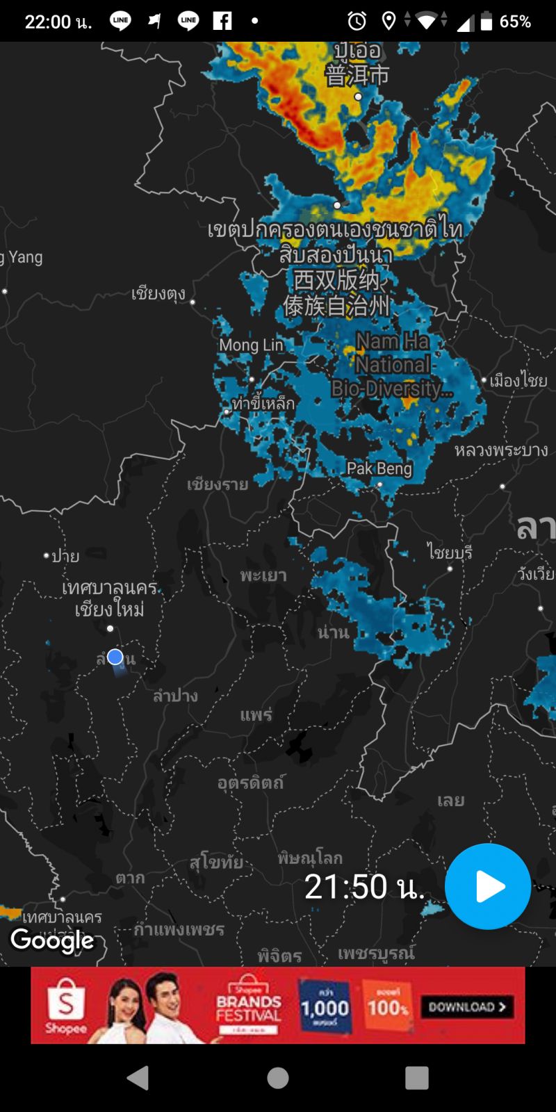 | • รายงานอากาศ 22.00น. พบฝนใน จ.เชียงราย น่าน พะเยา |