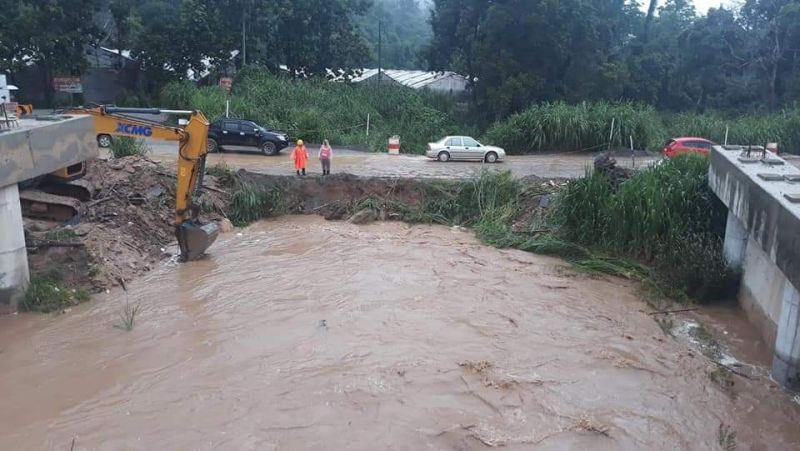 น้ำป่ามาแล้ว!! จนท. เร่งป้องกันทางเบี่ยงปางแฟน เพื่อไม่ให้ทางขาด