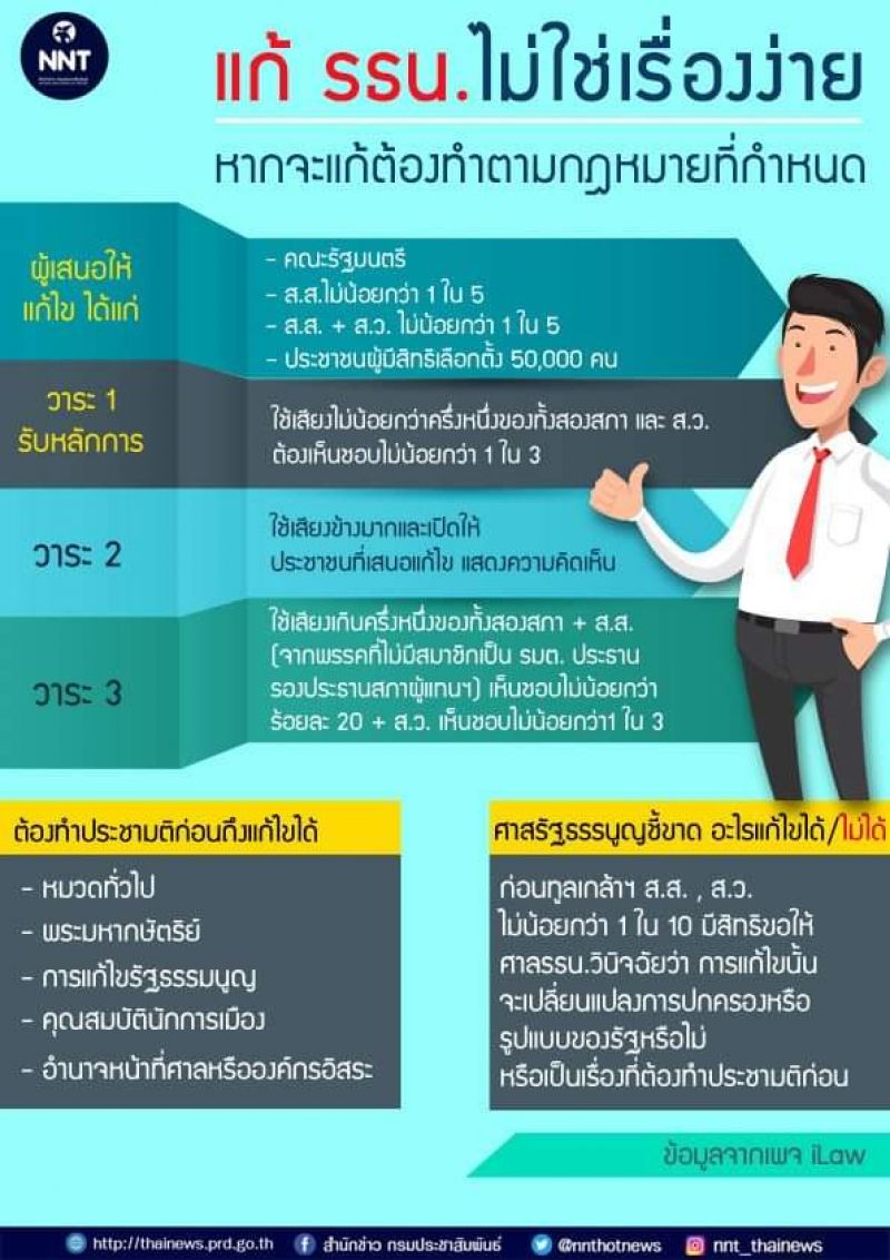 💥💥 แก้รัฐธรรมนูญไม่ใช่เรื่องง่าย แต่หากจะแก้ ก็มีขั้นตอนตามกฎหมาย .