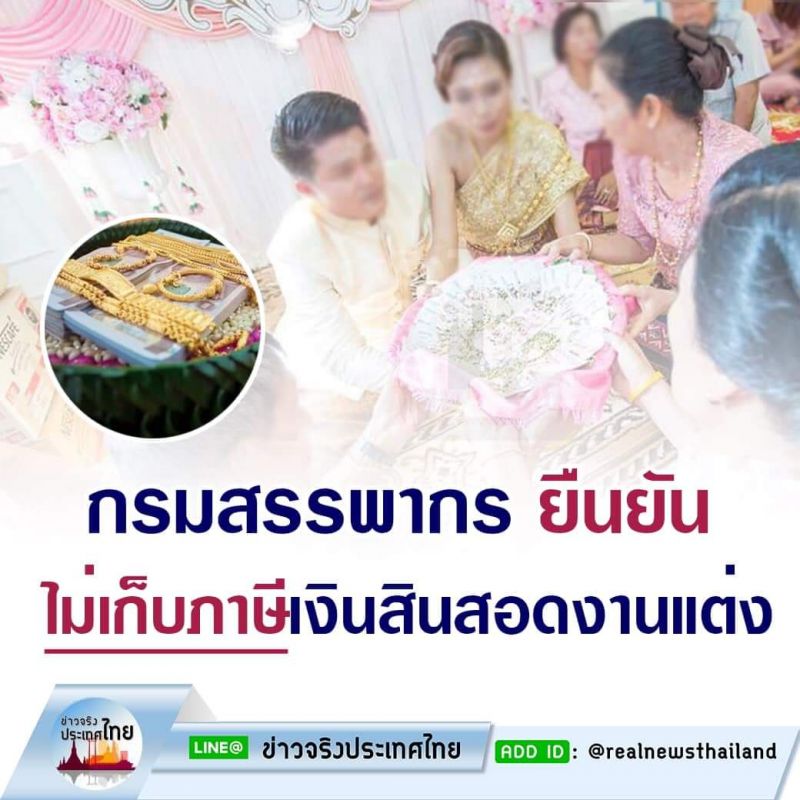 ❌❌ กรมสรรพากร ยืนยัน ไม่เก็บภาษีเงินสินสอดงานแต่ง