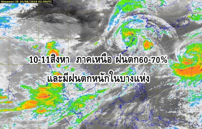 10-11สิงหา ภาคเหนือ ฝนตก60-70% และมีฝนตกหนักในบางแห่ง