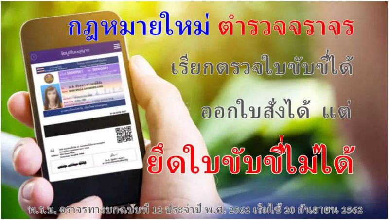 | • ตำรวจจราจร ยืดใบขับขี่ไม่ได้ และใช้ใบขับขี่ดิจิตอลได้ เริ่ม20กันยา62!!! |