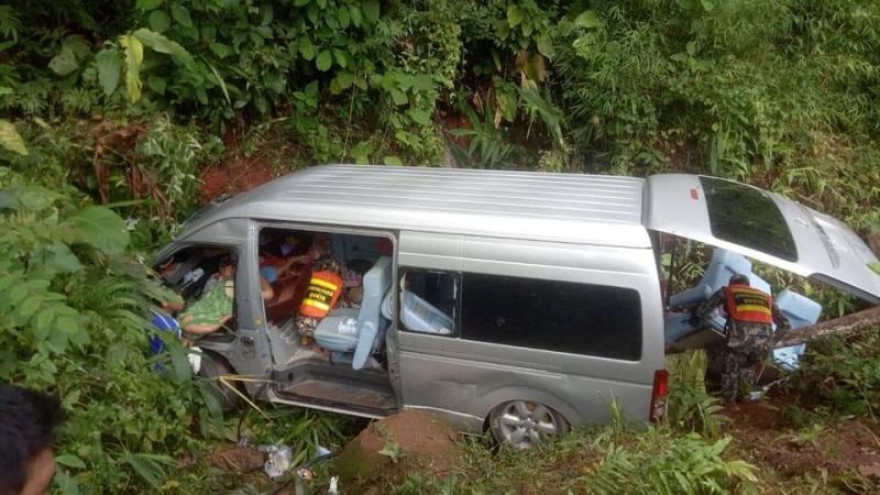 สภาพทาง เป็นทางโค้งลงเขายาวต่อเนื่อง ผิวทางสภาพดี ไม่มีหลุมบ่อ มีป้ายเตือน มีผู้โดยสาร 11 คน ได้รับบาดเจ็บสาหัส 4 คน เป็นผู้หญิง ได้รับบาดเจ็บเล็กน้อย 6 คน ผู้หญิง 5 คน ผู้ชาย 1 คน คนขับ คาดเข็มขัดนิรภัย